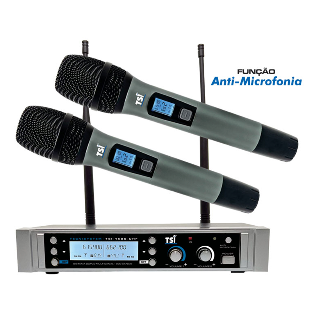 Este sistema trabalha com dois receptores de 400 canais em paralelo, totalizando 800 canais que podem ser selecionados dentro da sua faixa de operação, para urna melhor recepção livre de interferência, somado a isto, o receptor também dispõem do processo GHOST LESS de recepção RF (rádio frequência) evitando com isto o máximo de dropout (falhas na recepção). E a Função Anti-Microfonia que diminuí a ocorrência de feedback acústico ( para mais informações sobre a função ver página 5 do manual)